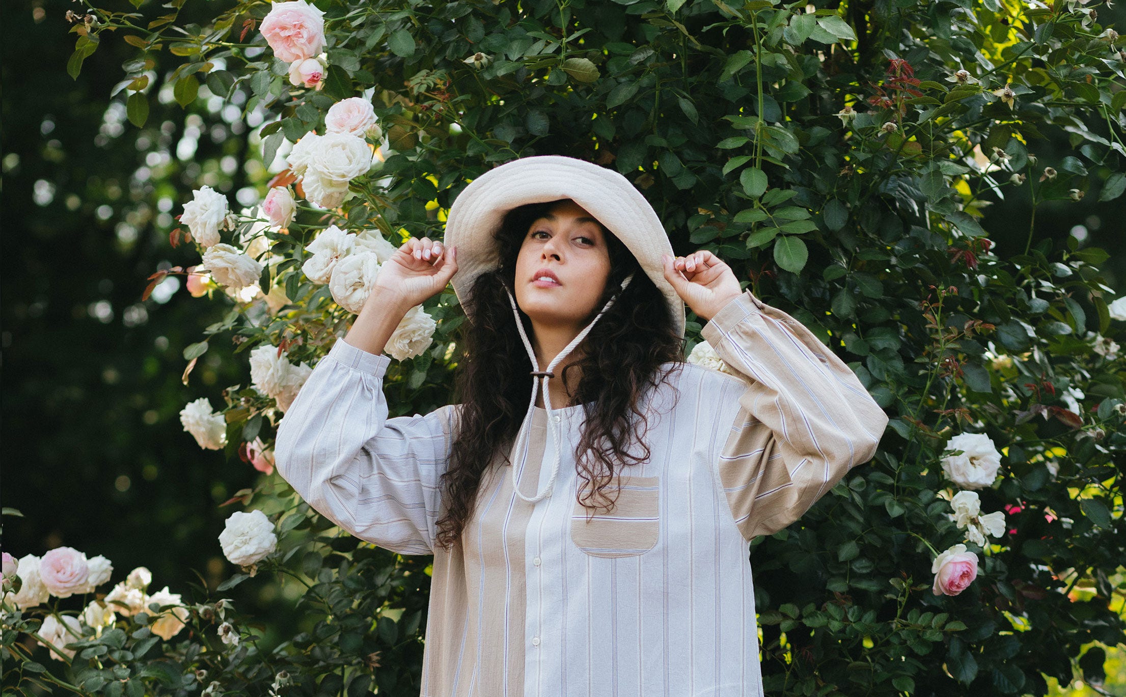 The garden is never still. Light shifts, and the flowers turn toward the fading light, their petals catching the last warmth of the day. Rosarium was born from this rhythm - a space where fabric and form follow the language of the garden.